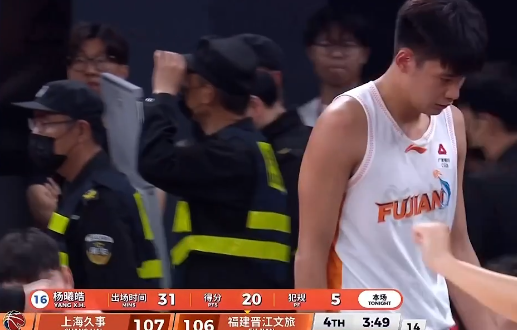 杨曦皓和王哲林卡位被吹5犯离场,全场20分7篮板2助攻