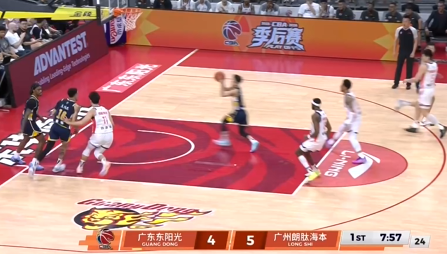 吕俊虎压哨打板三分命中,青岛首节20-22落后北京