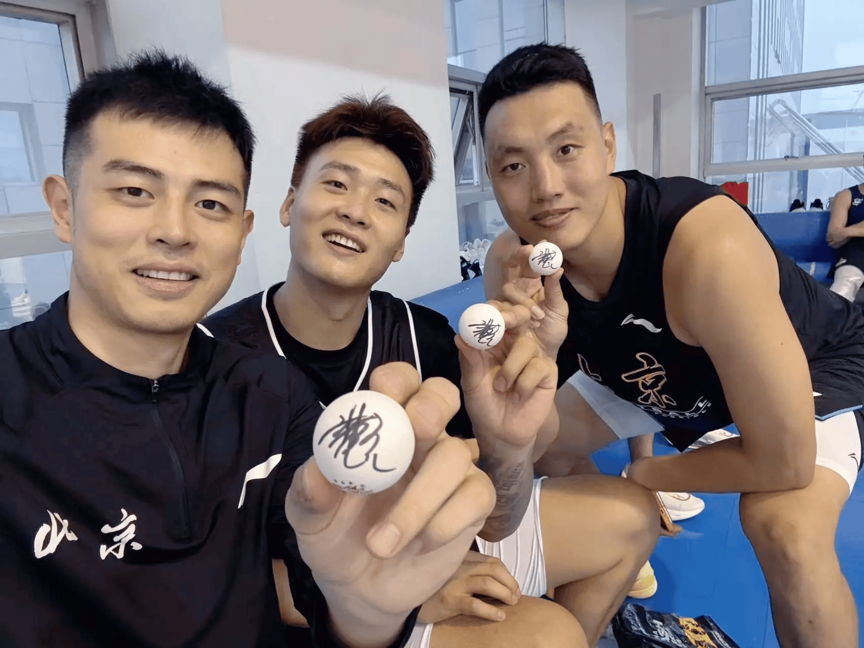 翟晓川社媒分享合影:与赵睿&方硕均收到王楚钦亲签乒乓球