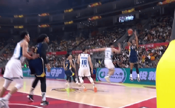 奎因底角接徐杰分球,干拔三分强投打成3+1