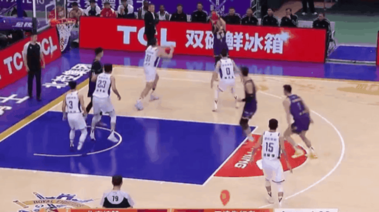 约克正面抢断胡明轩助攻吴前上篮打进,广东被反超叫出暂停