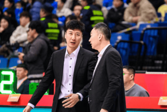 郭士强指导来到广东男篮主场观赛,并与胡明轩、徐杰交流
