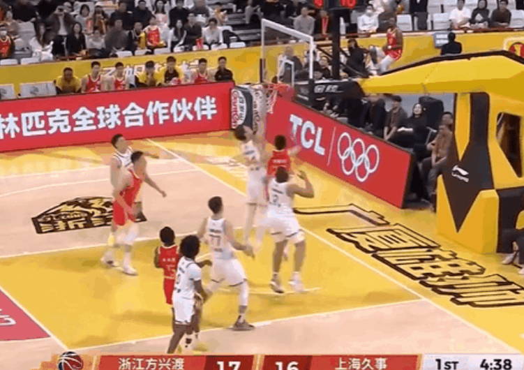 徐昕反击接球起飞单臂劈扣,广州领先5分江苏叫停