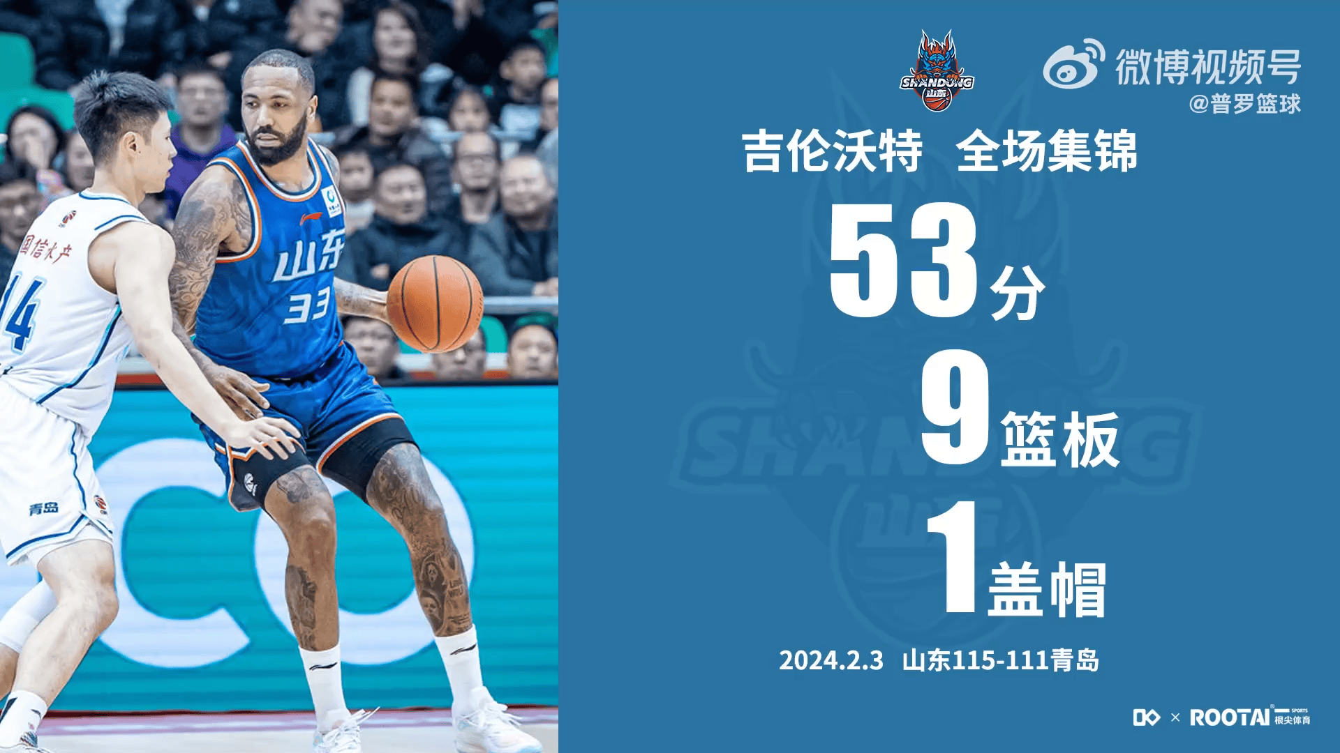 吉伦沃特CBA高光回顾,对阵青岛爆砍53分9篮板1盖帽