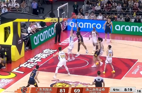 奎因一步起飞双手炸框暴扣,广东轰12-1领先广厦16分
