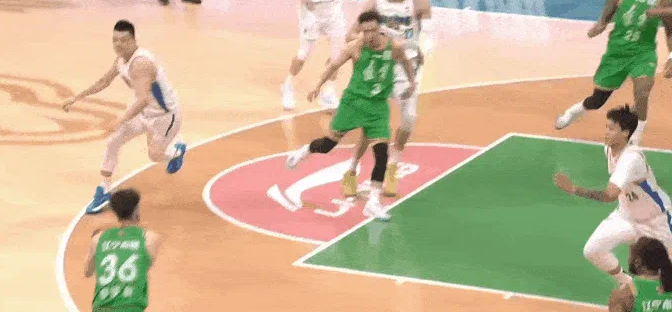 贝利45度直突篮下,面对张陈治锋打板命中