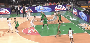 赵睿送出脑后妙传,周琦接球上篮造成犯规