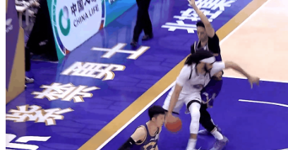 于米提接刘传兴助攻外线三分出手,布朗拍马赶来直接扇飞