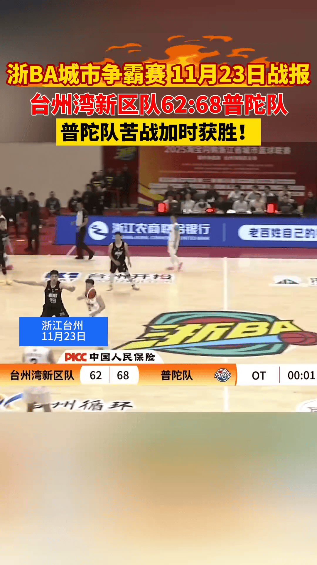 浙BA城市争霸赛精彩集锦,普陀68-62胜台州湾新区