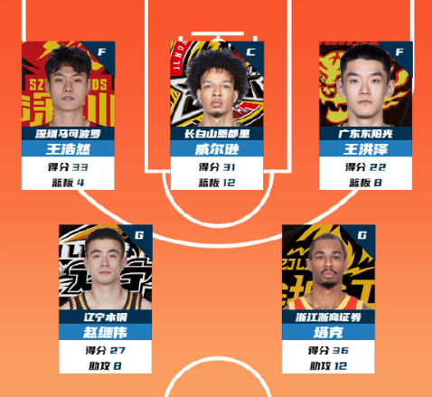 CBA常规赛第36轮最佳阵容:王浩然、王洪泽、赵继伟领衔