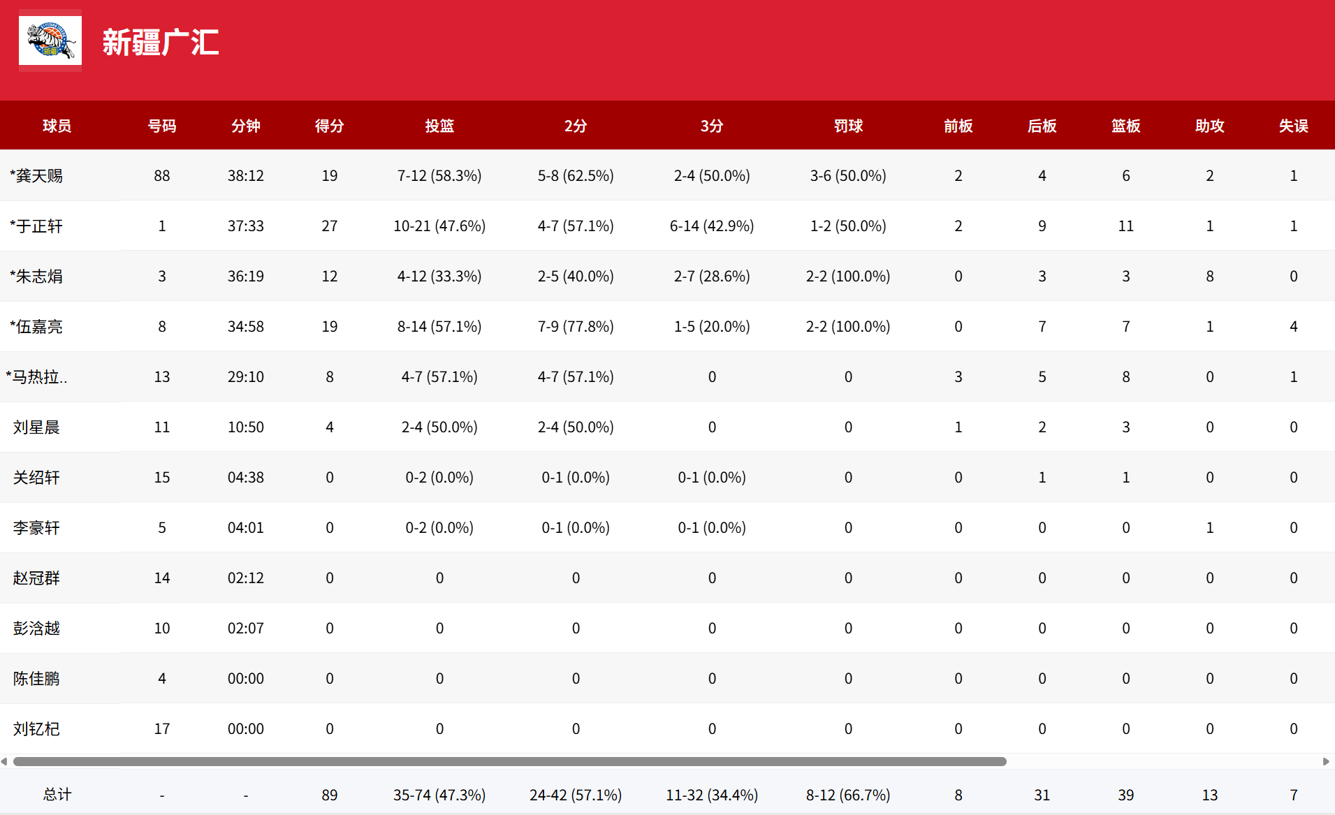 [赛后]新疆94-76广州,阿不都沙拉木18分10板7助,威金顿21分4助1冒