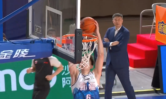 徐昕接妙传双手空接暴扣,目前4中4砍下8分8篮板2盖帽