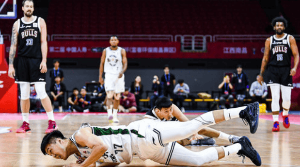 胡明轩突破飞身上篮落地受伤,随后缓缓起身继续比赛