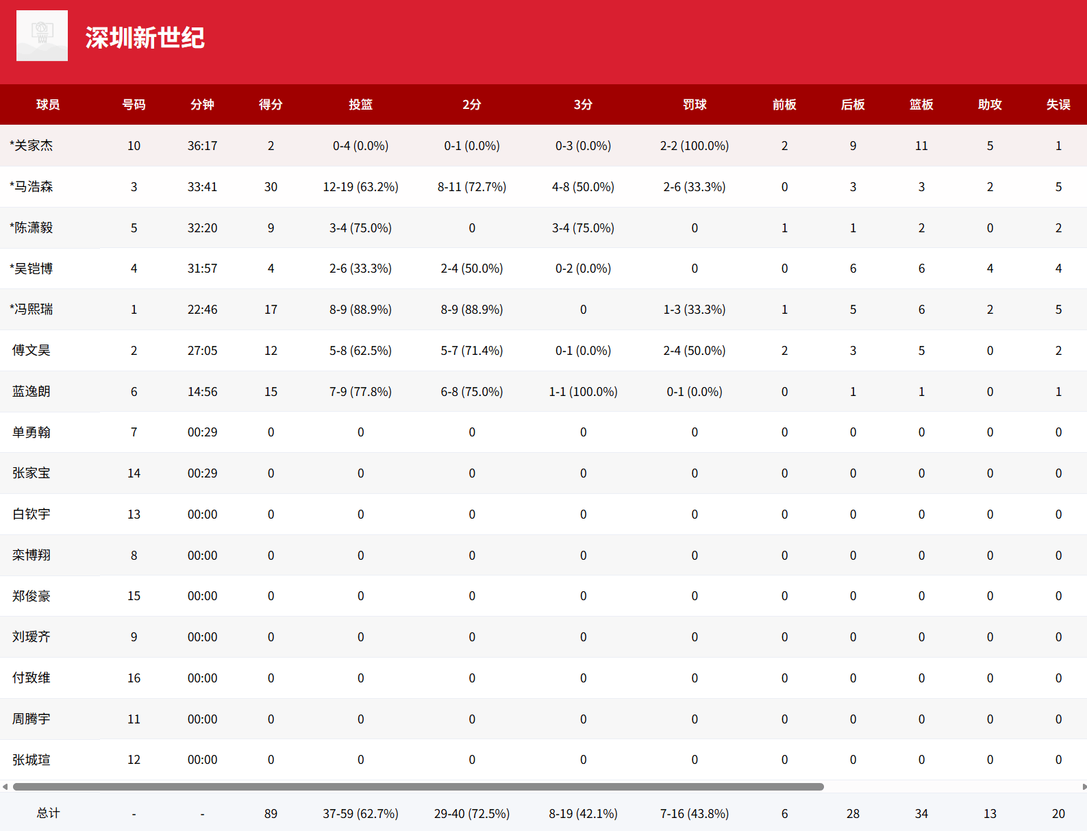 浙江球员李悦洲半场出战4分钟,投篮3中0未有得分入账
