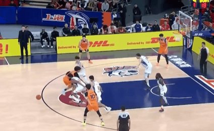 洛夫顿快攻反击双手暴扣,上海次节末已领先新疆4分