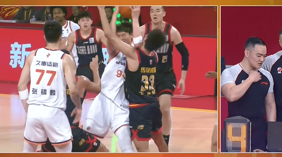 王哲林转身上篮时肘到王浩然,裁判回看后判罚普通进攻犯规