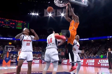 胡金秋篮下接传强起扣篮,对抗终结中头部遭击打