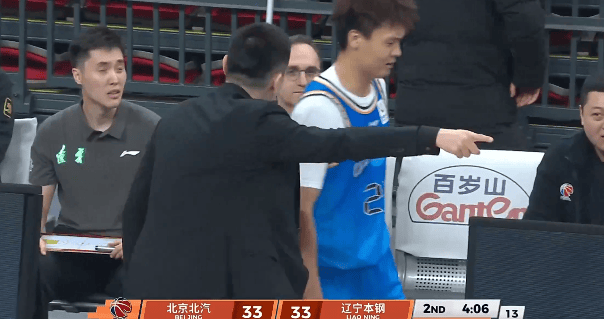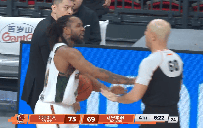 张宁绕掩护时身体撞到约翰逊被判普通犯规,丁伟情绪激动