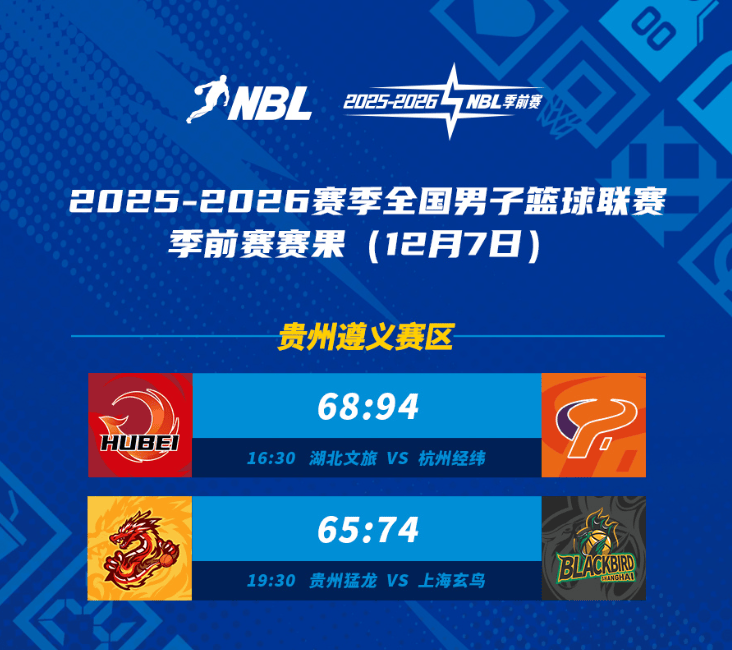 虎扑今日NBL季前赛战况:杭州经纬大胜湖北,上海玄鸟力克贵州