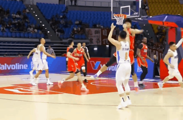 虎扑杨阿力反击一马当先欲上篮,宁鸿宇起飞送上钉板大帽