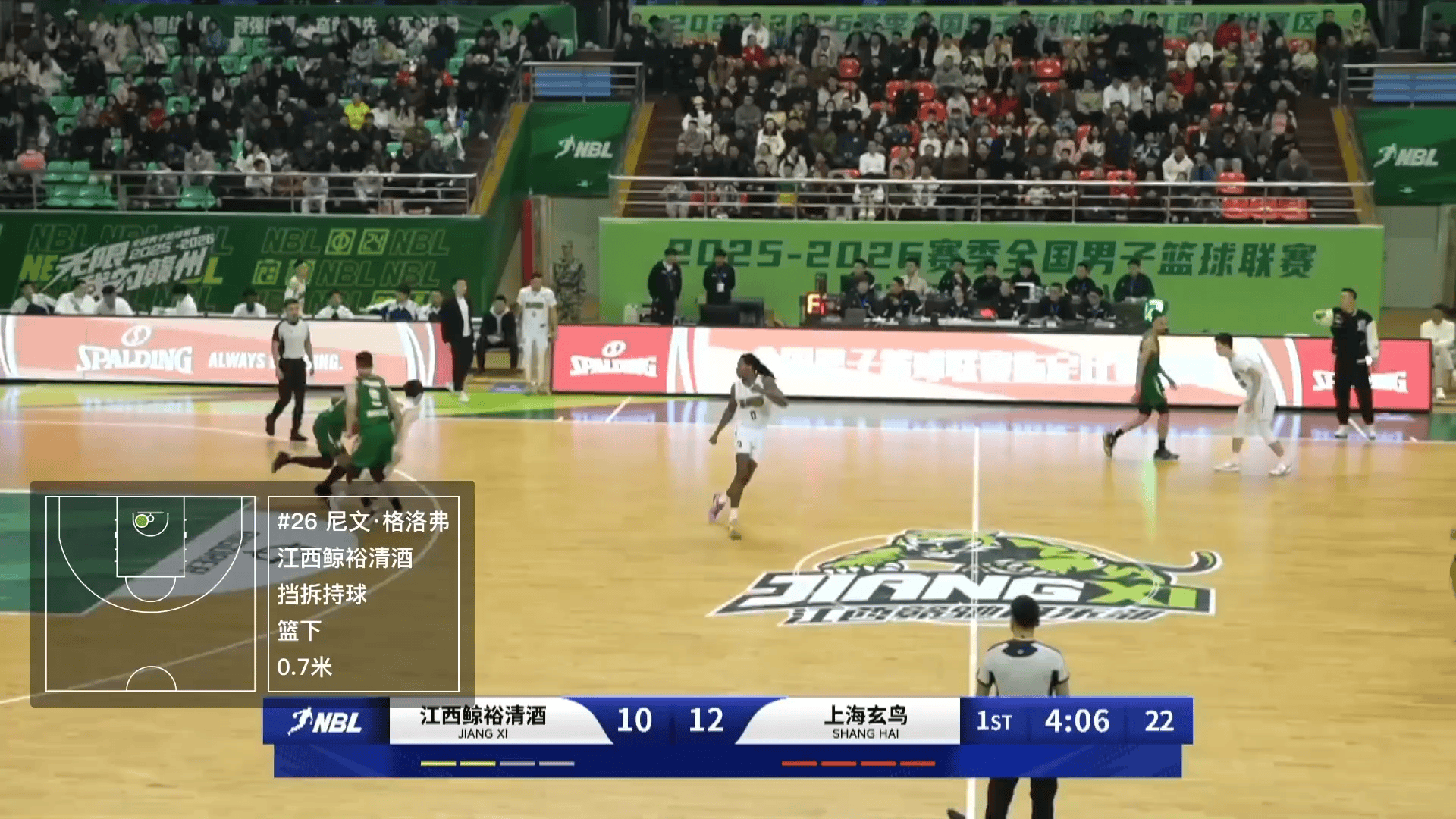 虎扑劳森篮下轻松上篮再次打进,新疆第三节领先广州22分
