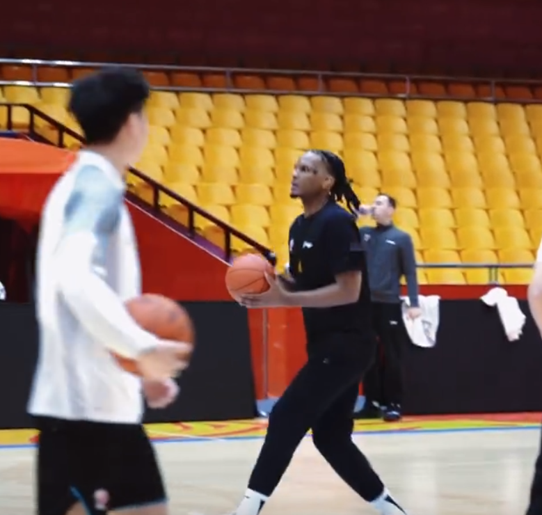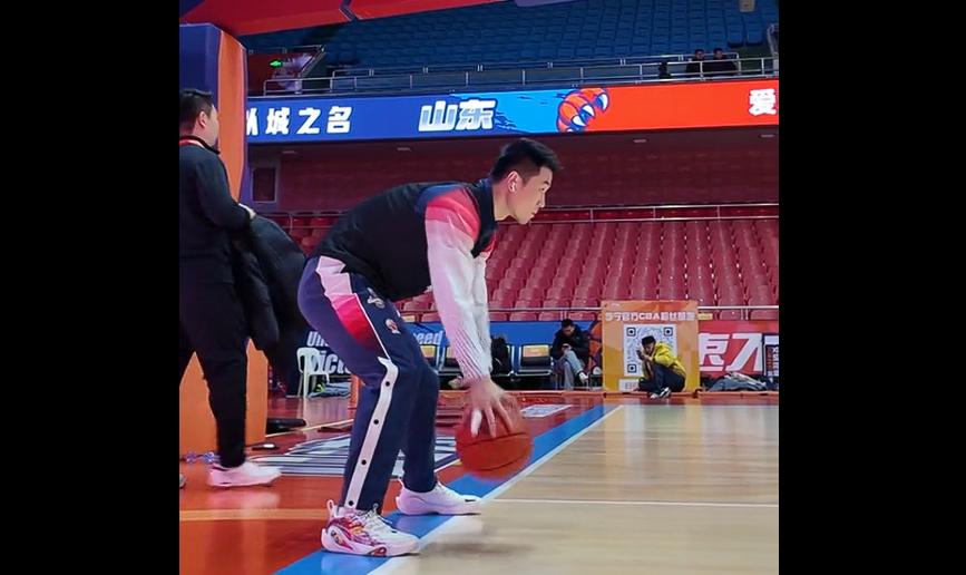 山东男篮分享球队踩场片段:高诗岩赛前热身时间