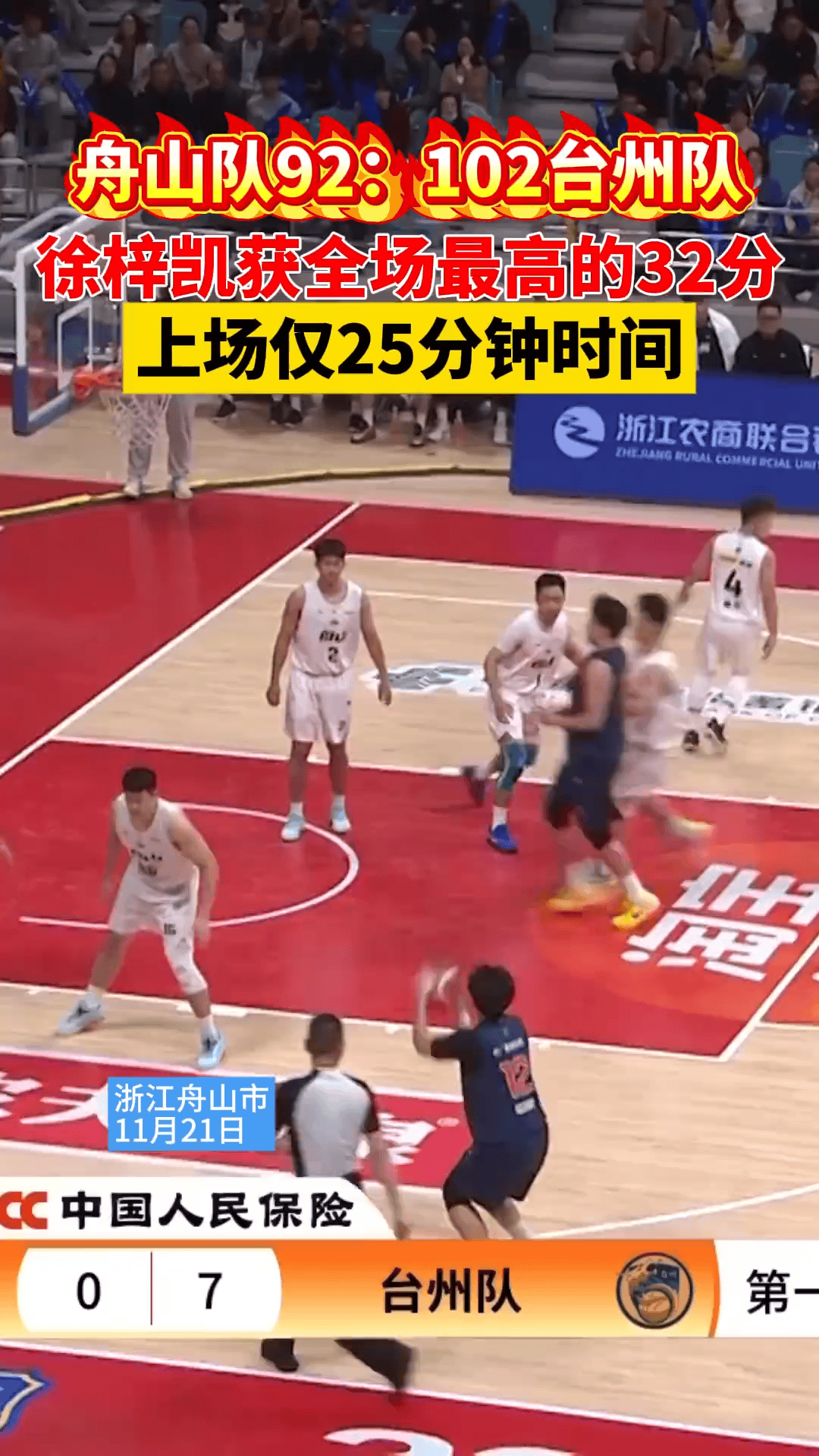 浙BA台州队徐梓凯个人集锦,出场25分钟得到32分