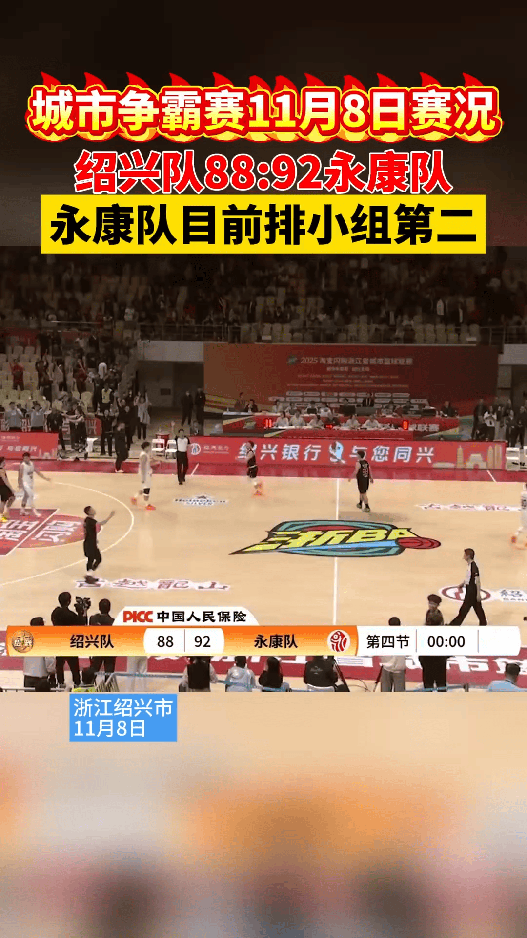 浙BA城市争霸赛精彩集锦,永康队92-88险胜绍兴队