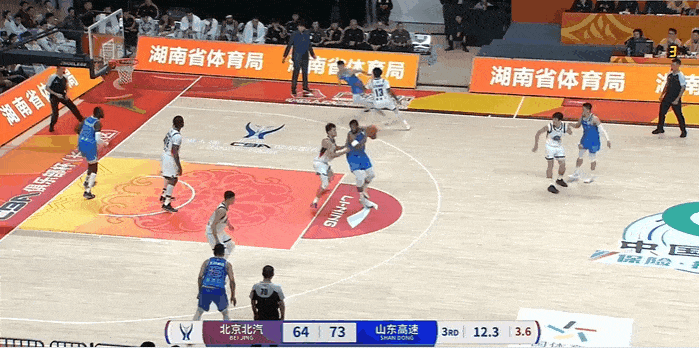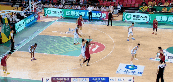 张洪硕突破强硬上篮打进,浙江三节71-65领先新疆