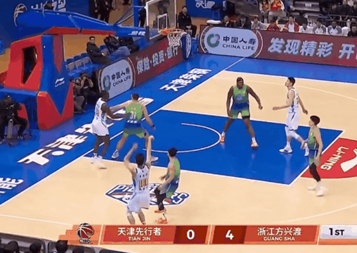 朱俊龙三分抬手就有空心入网,广厦开局打出7-0高潮领先天津