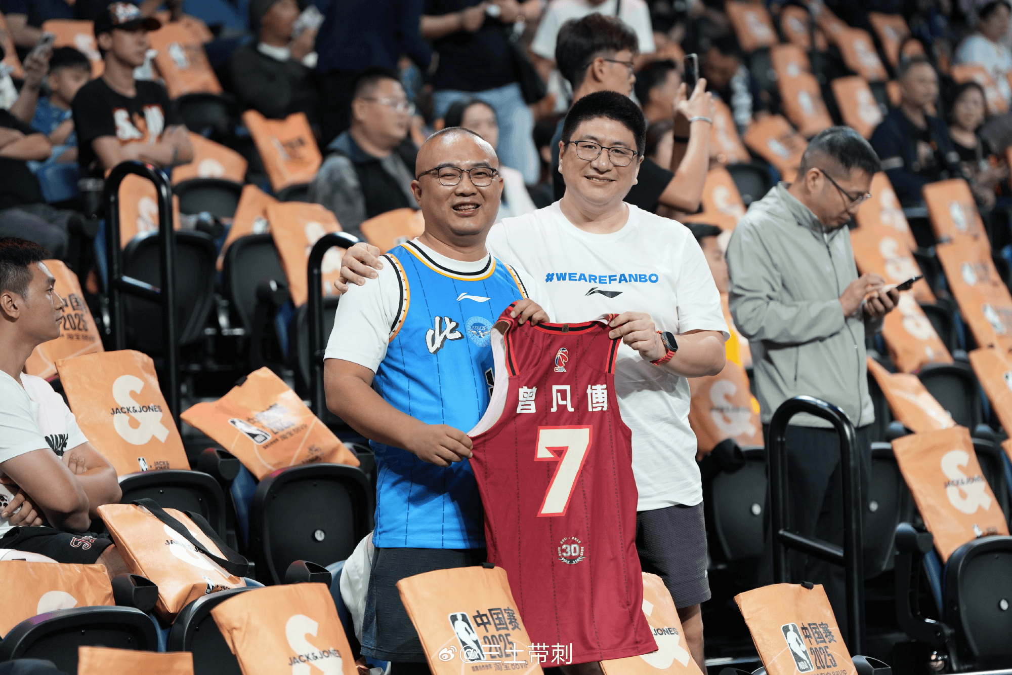 媒体人分享球迷手举曾凡博北京球衣合照:首钢球迷到位了