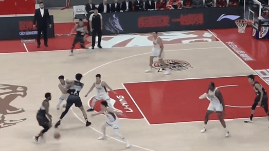 郭昊文加速突破过掉防守,直接起飞滑翔单臂劈扣