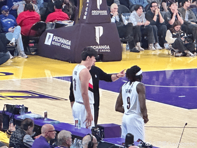 杨瀚森首节剩7分钟替补上场,格兰特底角三分投进反超湖人