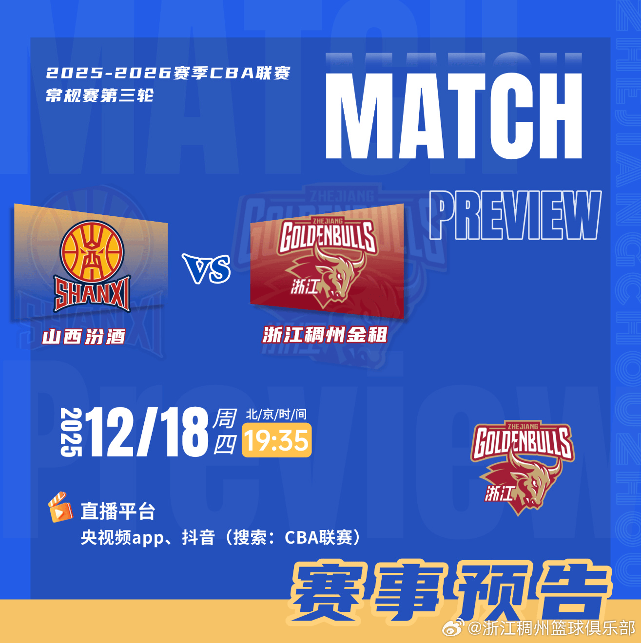 浙江男篮官方发布赛事预告,今晚将客场对阵山西男篮