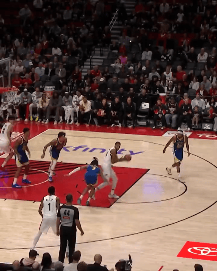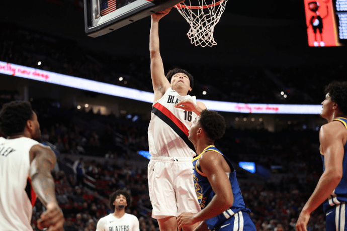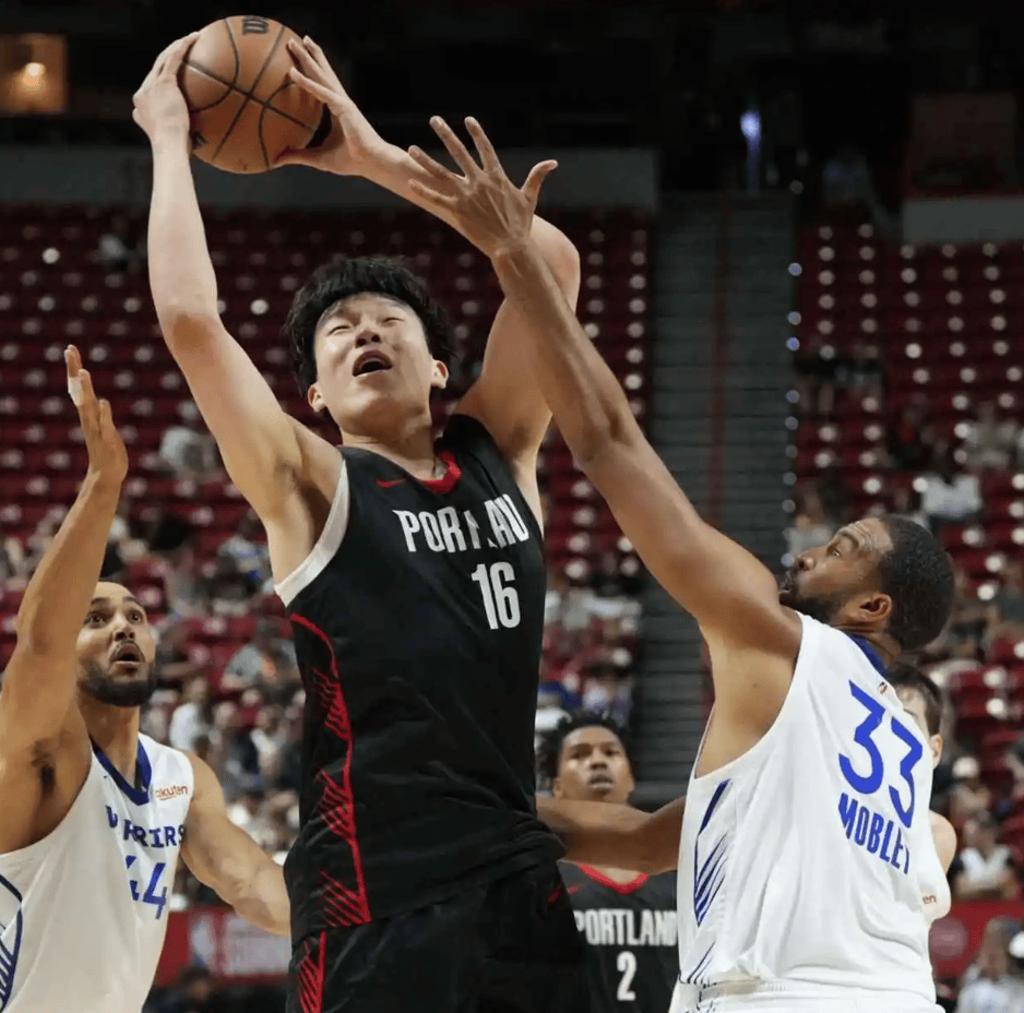 开拓者社媒分享杨瀚森对阵勇士精彩图集:一步一个脚印!