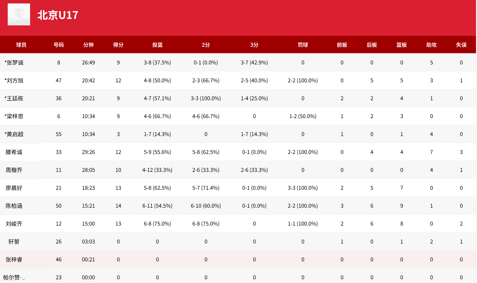 U17全国赛:陈柏涵14分9篮板,北京U17男篮104-76广州龙狮