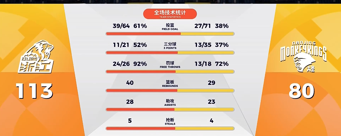 [赛后]广厦113-80南京,塔克33分3板9助,马内克13分7板3助
