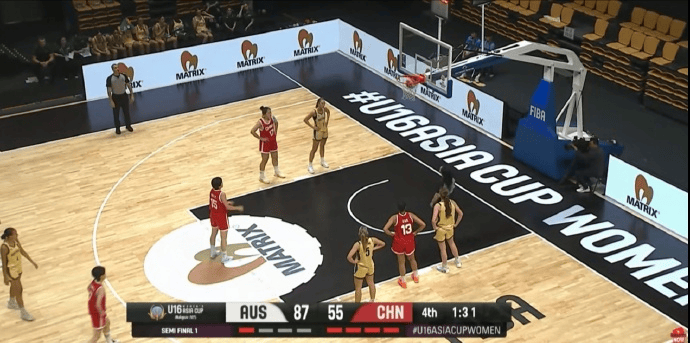 特劳特抢板强起打成2+1,中国U16女篮落后澳大利亚16分