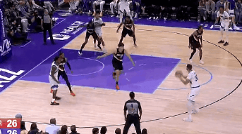 杨瀚森第二节再获上场机会,随后戈塔特掩护韦斯利上篮打进