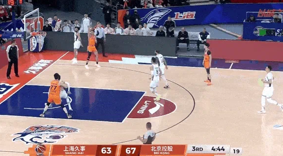 李添荣外线空位三分张手命中,上海队第三节追至1分分差