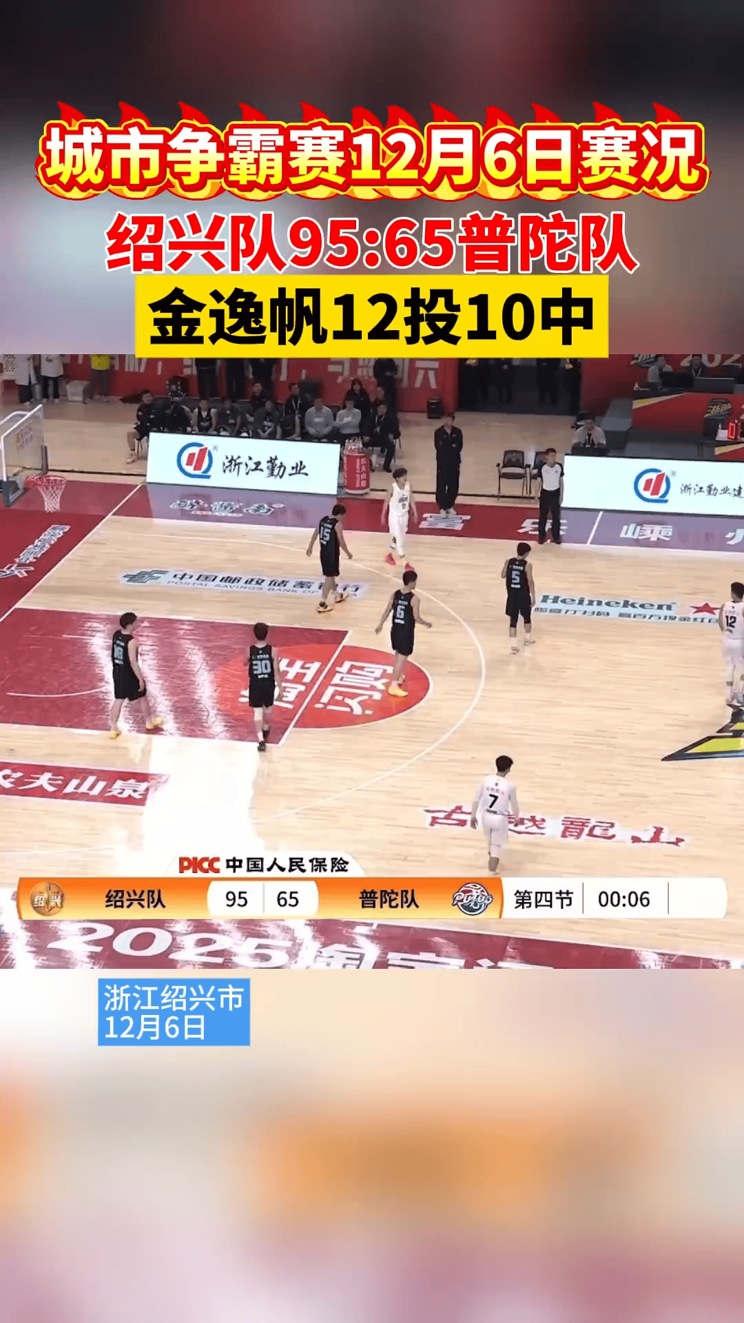 浙BA城市争霸赛精彩集锦,绍兴队95-65大胜普陀队