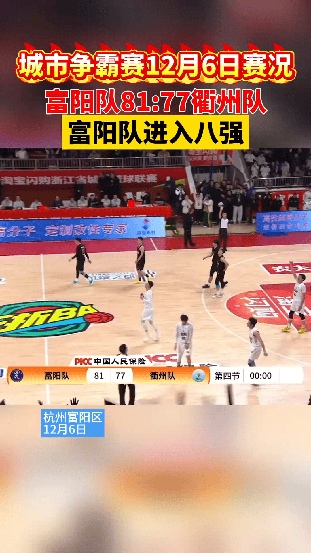 浙BA城市争霸赛精彩集锦,富阳队力克衢州队挺进八强