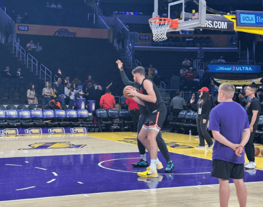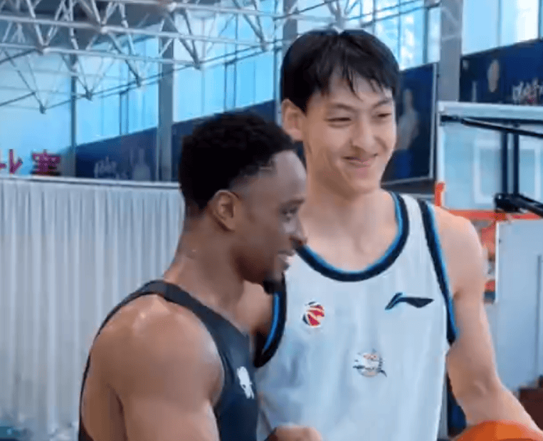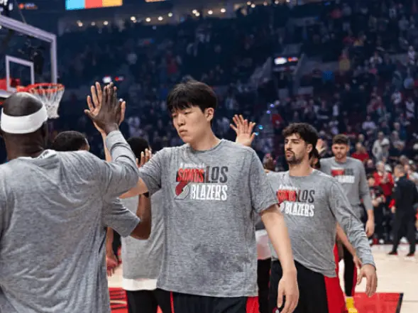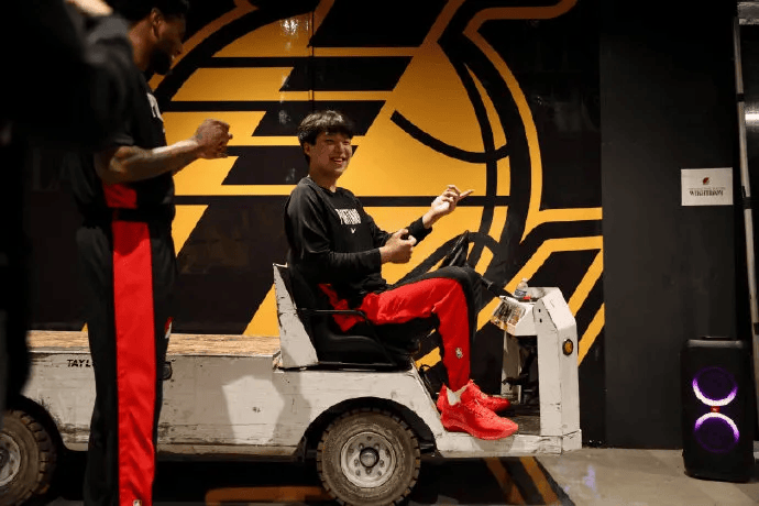开拓者社媒分享杨瀚森队友赛前互动照片:出发比赛