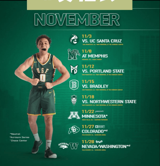 旧金山大学篮球经理分享赛程:新赛季首战将于11月3日进行