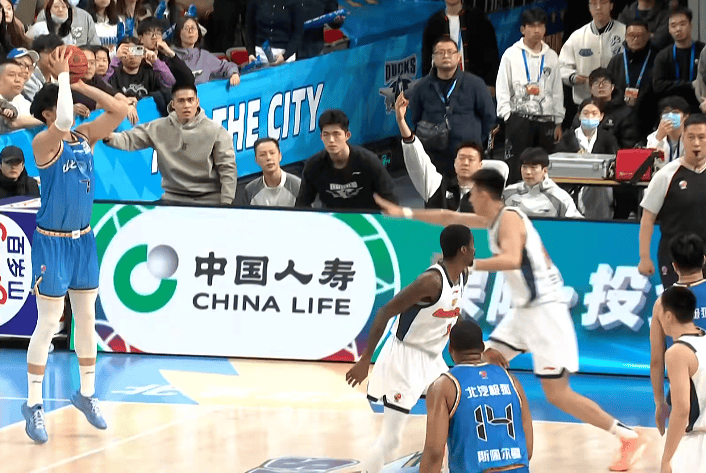 詹姆斯扛着对手强硬抛投打成2+1,天津将分差缩小至9分