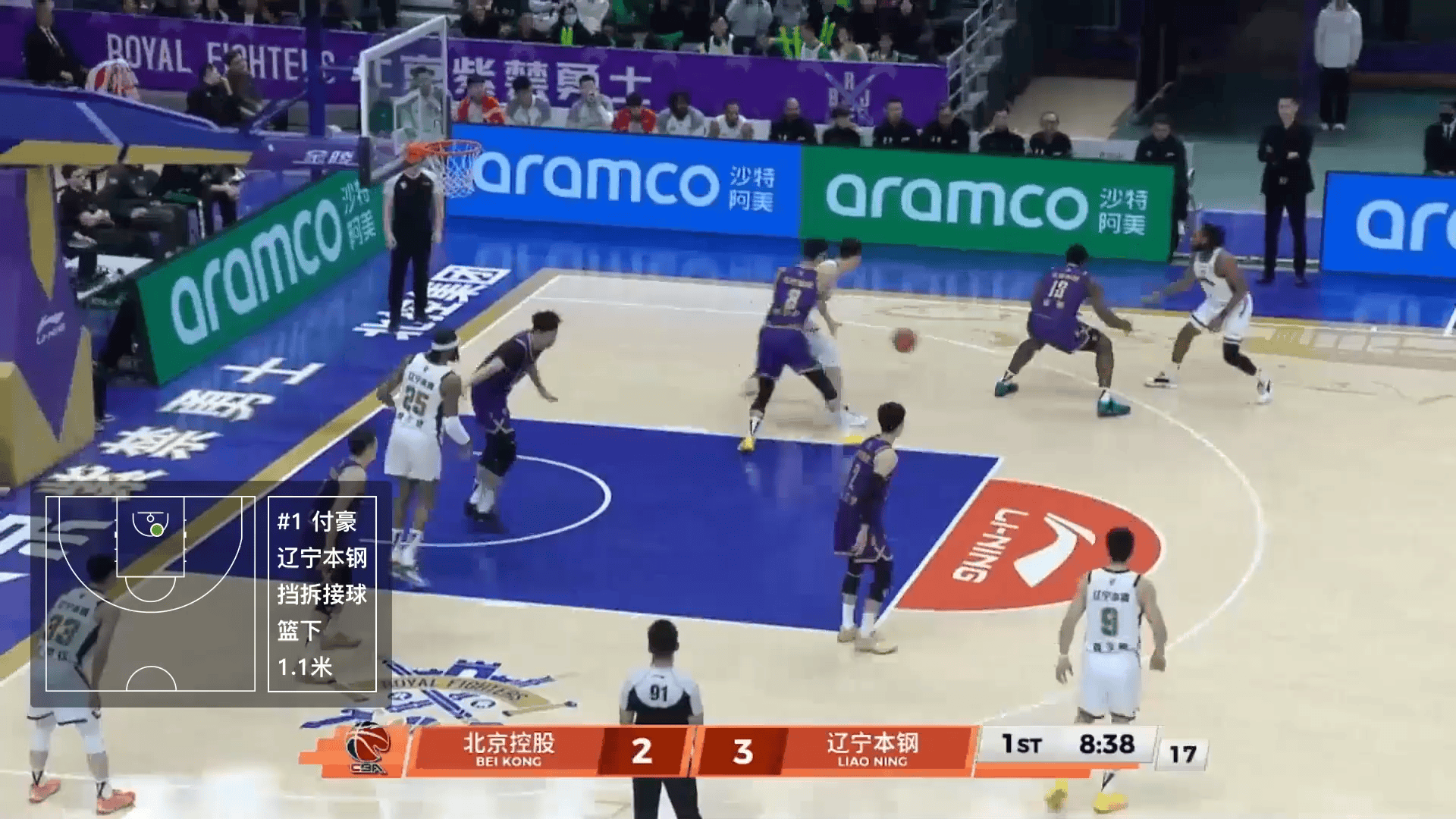 曾凡博上场投进三分又打成2+1连拿5分,北京领先9分打停广东