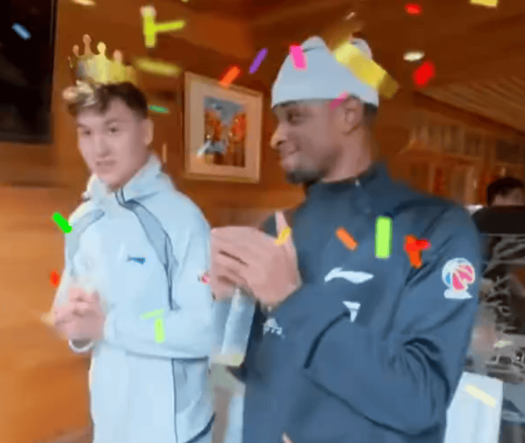 新疆男篮社媒分享庆生片段:祝纳托尔和伊力福拉提生日快乐