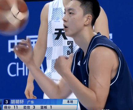 胡明轩上半场投篮9中6,三分2中1得到14分1篮板3助攻