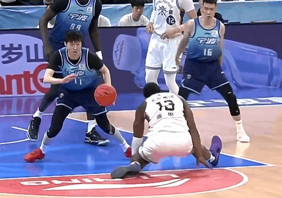 刘晓宇双人围堵下勾手出手,对抗过后意外受伤倒地