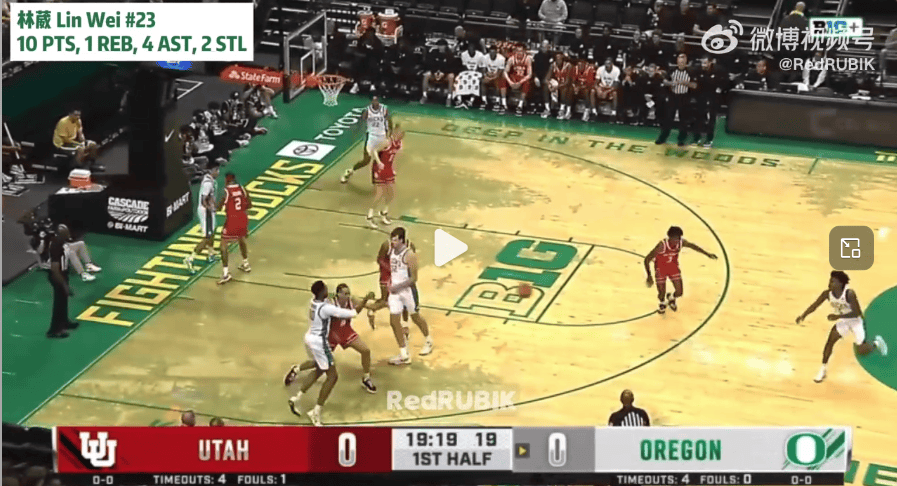 林葳俄勒冈首秀个人集锦,全场得到10分1板4助攻2抢断